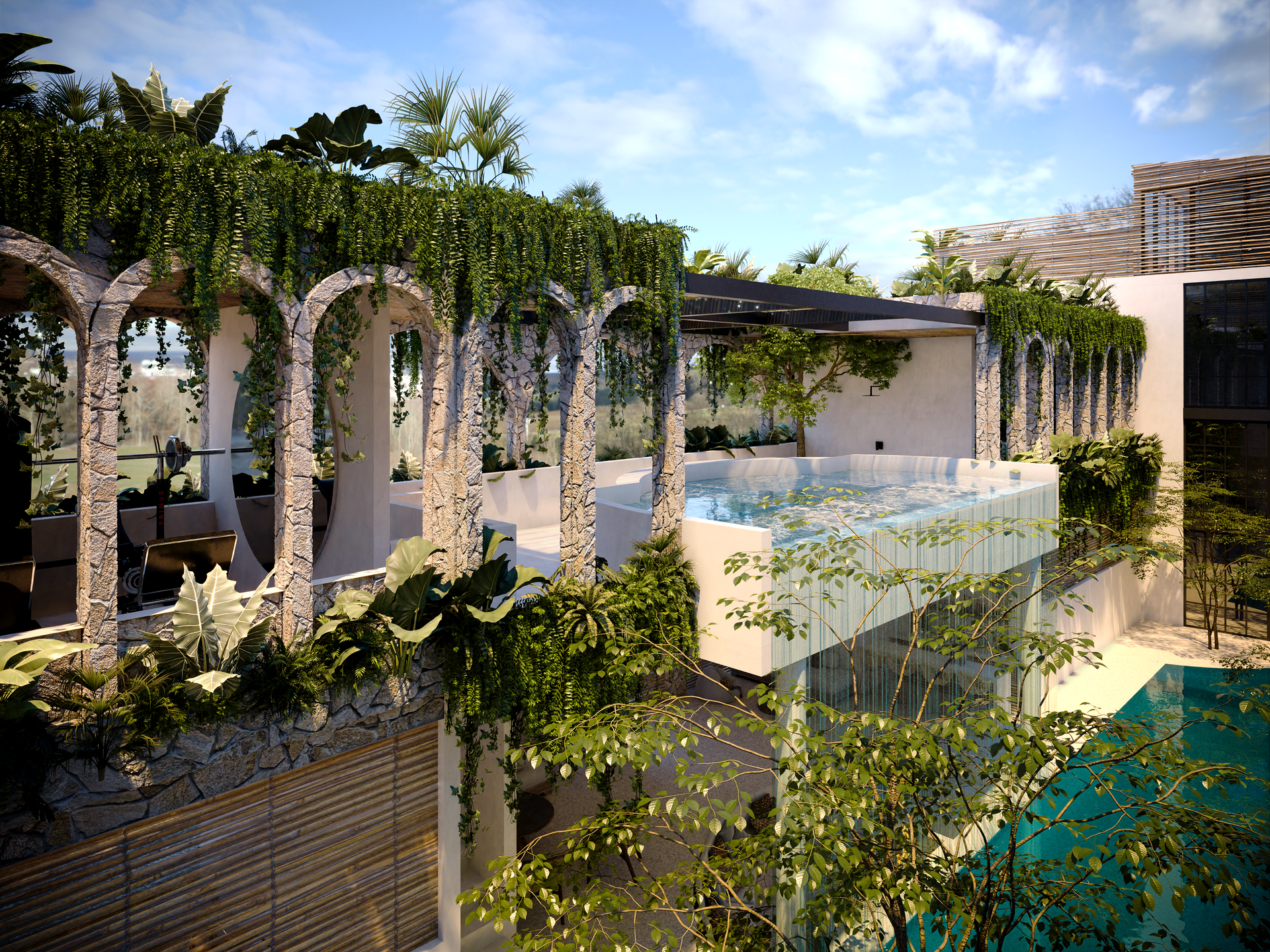 - Spa pool with waterfall
