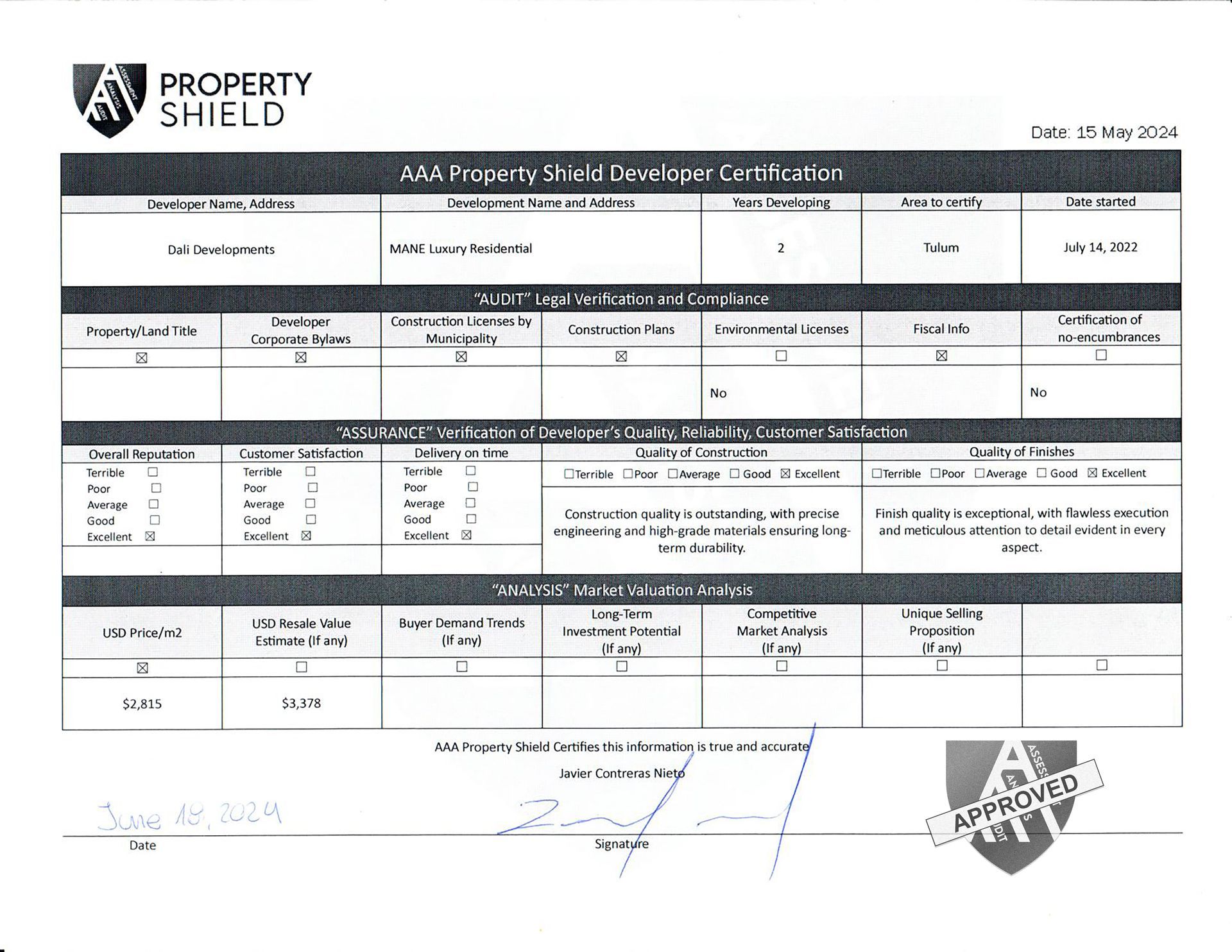 La propiedad de Mane Luxury Residences tiene un precio competitivo de $2,815 por m², alineándose con el precio promedio por metro cuadrado de propiedades comparables. Las comodidades únicas, como acabados de alta gama, muebles hechos a medida y acceso exclusivo a un club de playa privado, justifican su precio y lo convierten en una opción destacada en el mercado.